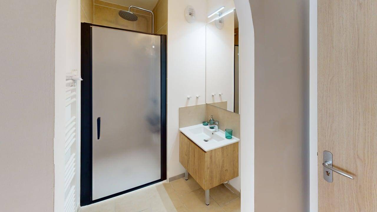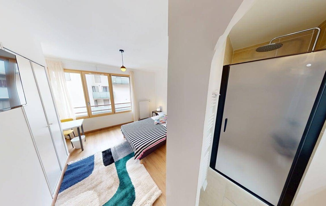 Espace privatif de la chambre disponible est de 16,41 m², entièrement meublé et équipé pour votre confort :