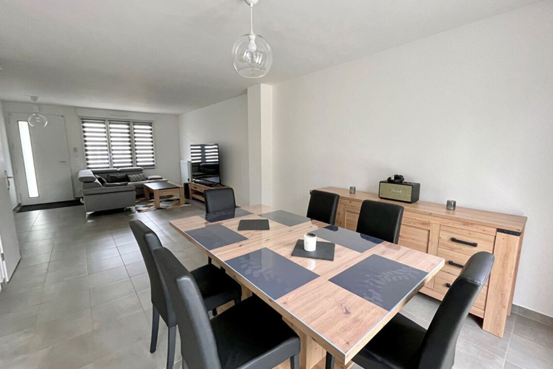 🏡 Maison F6 – – 95,85 m² – Secteur Pavillonnaire CalmeDans un environnement verdoyant et paisible, découvrez cette maison récente offrant de belles prestations.Rez-de-chaussée :• Cuisine aménagée ouverte sur un séjour lumineux• Salle d’eau avec WC• Espace rangementÉtage :• 4 chambres• Salle de bains• WC indépendantÀ l’extérieur, vous profitez d’un jardin clos ainsi que d’un garage.Un bien idéal pour une famille, alliant confort, modernité et tranquillité.